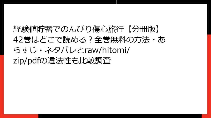 海賊版サイトで『経験値貯蓄でのんびり傷心旅行』を読むのは、法的・セキュリティ・倫理的・品質面で多大なリスクを伴います。一瞬の無料が、後々の後悔を生む可能性が高いです。代わりに、公式プラットフォームを利用して作者を応援し、安全に楽しむことをおすすめします。マンガの未来を守るためにも、海賊版は避けましょう。