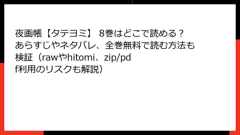 夜画帳【タテヨミ】 8巻はどこで読める?あらすじやネタバレ、全巻無料で読む方法も検証(rawやhitomi、zip/pdf利用のリスクも解説)