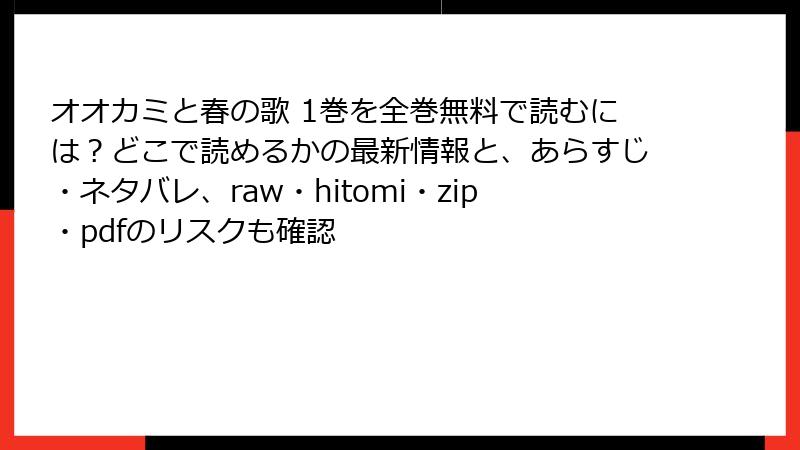 人気BLコミック『オオカミと春の歌』を、raw、hitomi、zip、pdf、漫画バンクなどの海賊版サイトで無料で読みたいと思う人は少なくないでしょう。しかし、そんな「便利」な選択の裏側には、想像以上のリスクが潜んでいます。この記事では、海賊版サイトを利用することの法的・セキュリティ・経済的・倫理的な危険性を詳しく解説。読む前に知っておくべき事実を、具体例を交えて掘り下げます。海賊版は一時的な満足を与えるかもしれませんが、長期的に見て後悔の種になる可能性が高いのです。