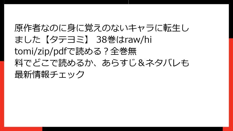原作者なのに身に覚えのないキャラに転生しました【タテヨミ】 38巻はraw/hitomi/zip/pdfで読める?全巻無料でどこで読めるか、あらすじ&ネタバレも最新情報チェック