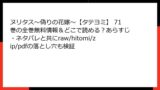 - 内容の不完全さ: 翻訳ミスや欠ページが多く、ネタバレや誤解を招く。pdf形式だとウイルス付きの偽ファイルが混在。