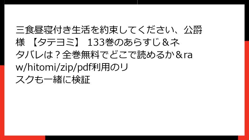 三食昼寝付き生活を約束してください、公爵様 【タテヨミ】 133巻のあらすじ&ネタバレは?全巻無料でどこで読めるか&raw/hitomi/zip/pdf利用のリスクも一緒に検証