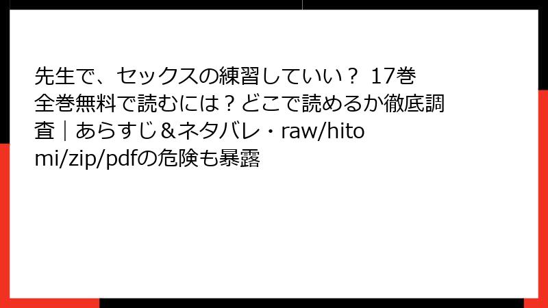 先生で、セックスの練習していい? 17巻全巻無料で読むには?どこで読めるか徹底調査|あらすじ&ネタバレ・raw/hitomi/zip/pdfの危険も暴露