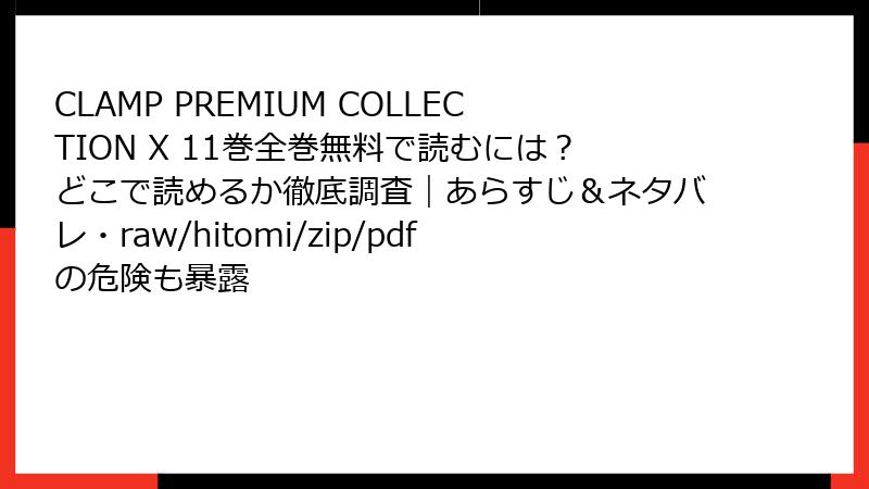 CLAMP PREMIUM COLLECTION X 11巻を海賊版サイトで読むリスク:法的・セキュリティ面の脅威