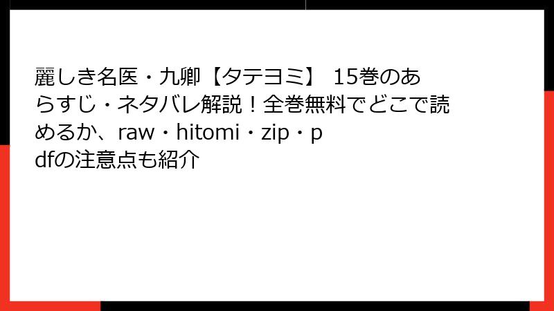 人気の中国風タイムリープ復讐漫画『麗しき名医・九卿』を、無料で読みたい一心でraw、hitomi、zip、pdf、漫画バンクなどの海賊版サイトにアクセスする人は少なくありません。しかし、これらのサイトは一見便利に見えて、法的罰則、ウイルス感染、個人情報漏洩など深刻なリスクを伴います。2025年現在、海賊版サイトの利用者は増加傾向ですが、被害事例も急増中。この記事では、具体的なリスクを詳しく解説し、なぜ避けるべきかを読み応えある形で掘り下げます。無料の裏側に潜む闇を知り、安全な読書ライフを守りましょう。