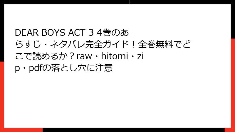 DEAR BOYS ACT 3 4巻のあらすじ・ネタバレ完全ガイド!全巻無料でどこで読めるか?raw・hitomi・zip・pdfの落とし穴に注意
