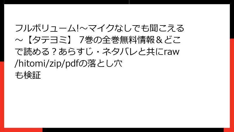 フルボリューム!~マイクなしでも聞こえる~【タテヨミ】 7巻の全巻無料情報&どこで読める?あらすじ・ネタバレと共にraw/hitomi/zip/pdfの落とし穴も検証