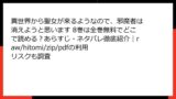 - 閲覧だけの誤解: 「見るだけならOK」という思い込みが危うい。サイトのログが当局に渡るリスクを忘れずに。