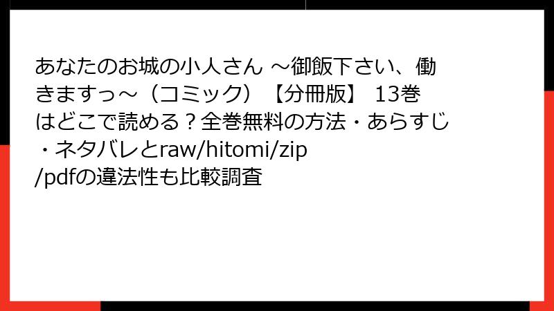 あなたのお城の小人さん ~御飯下さい、働きますっ~(コミック)【分冊版】 13巻はどこで読める?全巻無料の方法・あらすじ・ネタバレとraw/hitomi/zip/pdfの違法性も比較調査