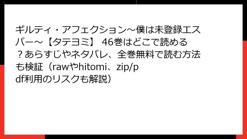 人気のBL漫画「ギルティ・アフェクション~僕は未登録エスパー~」を、raw、hitomi、zip、pdf、漫画バンクなどの海賊版サイトで無料で読もうと考える人もいるかもしれません。しかし、これらのサイトを利用することは、さまざまな深刻なリスクを伴います。この記事では、法的側面からセキュリティ、品質、業界への影響までを詳しく解説します。海賊版は一時的な便利さを提供するかもしれませんが、長期的には自分自身やクリエイターに害を及ぼす可能性が高いのです。