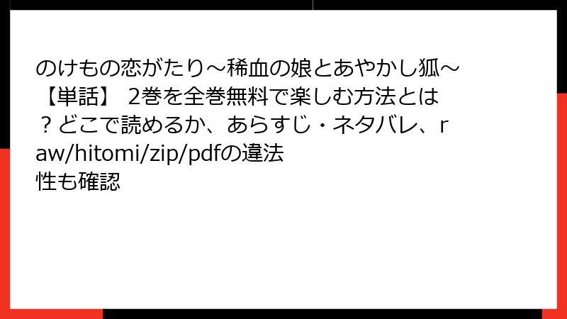 人気のラブファンタジー漫画「のけもの恋がたり~稀血の娘とあやかし狐~」を、raw、hitomi、zip、pdf、漫画バンクなどの海賊版サイトで無料で読もうとする人は少なくありません。しかし、これらのサイトは著作権を侵害した違法アップロードコンテンツを提供しており、利用者はさまざまなリスクを負うことになります。法的問題からセキュリティの脅威、さらには倫理的な側面まで、幅広い危険性が伴います。この記事では、これらのリスクを詳しく解説し、正しい楽しみ方を考えるきっかけにします。