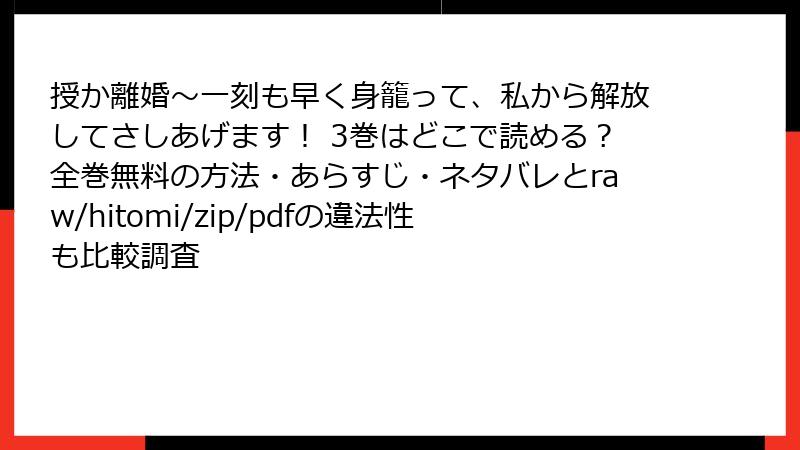 人気のファンタジーラブロマンス漫画『授か離婚~一刻も早く身籠って、私から解放してさしあげます!』を楽しみたいと思っている読者の中には、海賊版サイトを利用しようとする人もいるかもしれません。しかし、raw、hitomi、zip、pdf、漫画バンクなどの違法サイトで読む行為は、さまざまな深刻なリスクを伴います。この記事では、それらのリスクを法的、セキュリティ、品質・倫理的観点から詳しく解説します。海賊版サイトの利用は避け、正規の方法を選ぶことを強くおすすめします。