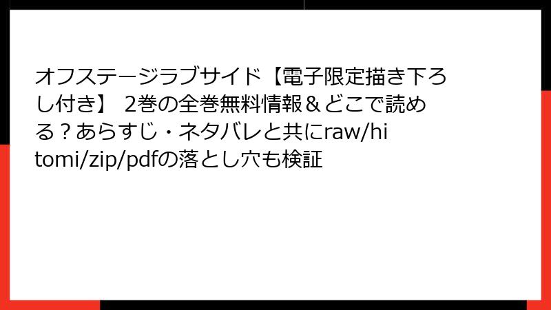 オフステージラブサイド【電子限定描き下ろし付き】 2巻の全巻無料情報&どこで読める?あらすじ・ネタバレと共にraw/hitomi/zip/pdfの落とし穴も検証