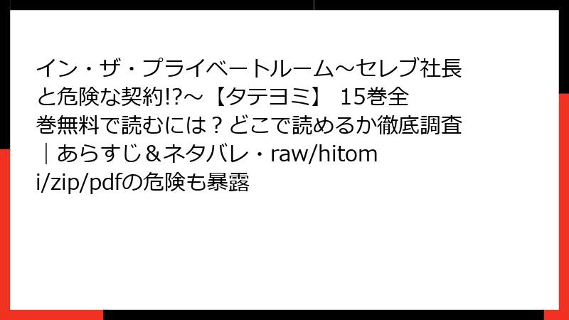 『イン・ザ・プライベートルーム~セレブ社長と危険な契約!?~【タテヨミ】』をraw/hitomi/zip/pdf/漫画バンクなどの海賊版サイトで読むリスク