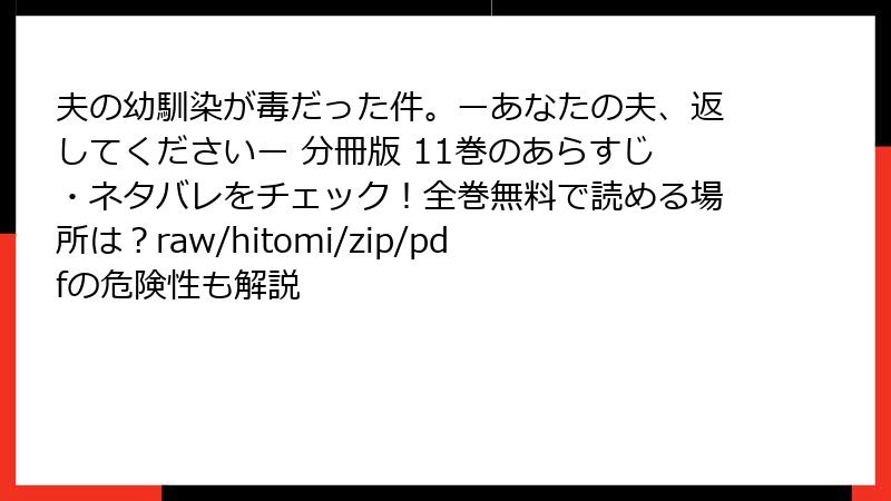 『夫の幼馴染が毒だった件。ーあなたの夫、返してくださいー』をraw/hitomi/zip/pdf/漫画バンクなどの海賊版サイトで読むリスク