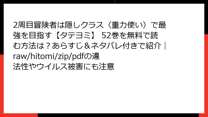 『2周目冒険者は隠しクラス〈重力使い〉で最強を目指す【タテヨミ】』をraw/hitomi/zip/pdf/漫画バンクなどの海賊版サイトで読むリスクを徹底解説