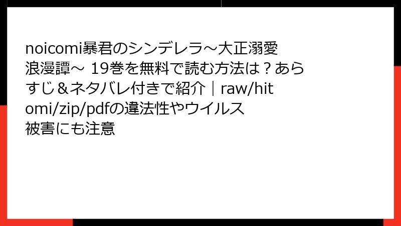 人気漫画『暴君のシンデレラ~大正溺愛浪漫譚~』を無料で読みたいという誘惑から、raw、hitomi、zip、pdf、漫画バンクなどの海賊版サイトに手を出してしまう人が少なくありません。これらのサイトは著作権を無視した違法アップロードコンテンツを提供していますが、利用者は一見「無料」の裏側で深刻なリスクを抱えることになります。法的な罰則からデバイスへのダメージ、個人情報の流出まで、さまざまな脅威が潜んでいます。以下で詳しく解説します。