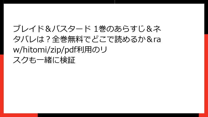 ブレイド&バスタードのような魅力的な作品を海賊版サイトで読むのは、短期的には便利ですが、長期的には法的・セキュリティ・倫理的な多大なリスクを伴います。これらのサイトは一時的な快楽を提供する代わりに、ユーザー自身や業界に害を及ぼす存在です。安全で質の高い体験を求めるなら、正規のプラットフォームを利用することをおすすめします。リスクを理解し、賢い選択を心がけましょう。