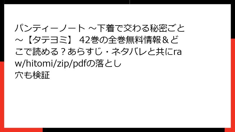 パンティーノート ~下着で交わる秘密ごと~【タテヨミ】42巻をraw/hitomi/zip/pdf/漫画バンクなどの海賊版サイトで読むリスク
