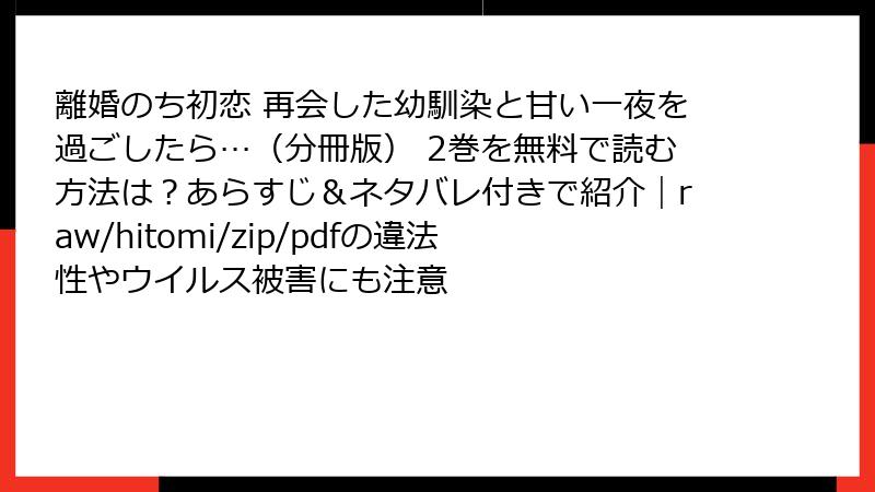 『離婚のち初恋 再会した幼馴染と甘い一夜を過ごしたら…(分冊版)』第2巻を海賊版サイトで読むリスク
