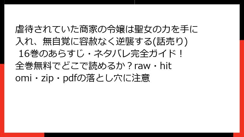 『虐待されていた商家の令嬢は聖女の力を手に入れ、無自覚に容赦なく逆襲する』をraw/hitomi/zip/pdf/漫画バンクなどの海賊版サイトで読むリスク