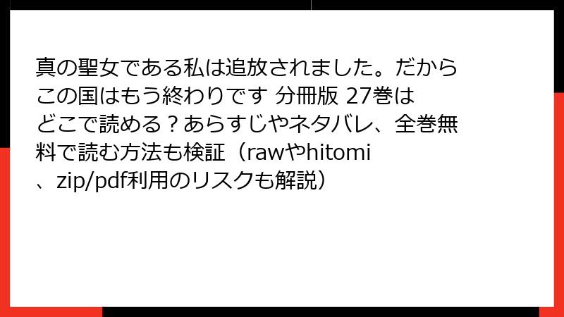 真の聖女である私は追放されました。だからこの国はもう終わりです 分冊版 27巻はどこで読める?あらすじやネタバレ、全巻無料で読む方法も検証(rawやhitomi、zip/pdf利用のリスクも解説)