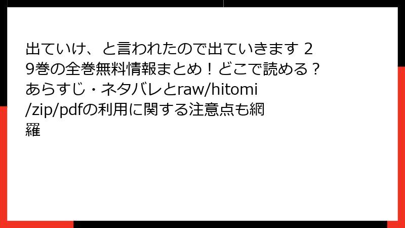 人気のファンタジー漫画「出ていけ、と言われたので出ていきます」を無料で楽しみたいという気持ちはわかりますが、raw、hitomi、zip、pdf、漫画バンクなどの海賊版サイトを利用するのは非常に危険です。これらのサイトは著作権侵害を助長する違法なプラットフォームで、利用者が直面するリスクは多岐にわたります。この記事では、そんな海賊版サイトの利用に伴う具体的なリスクを詳しく解説します。法的問題からセキュリティの脅威まで、読み応えのある形で深掘りしていきましょう。
