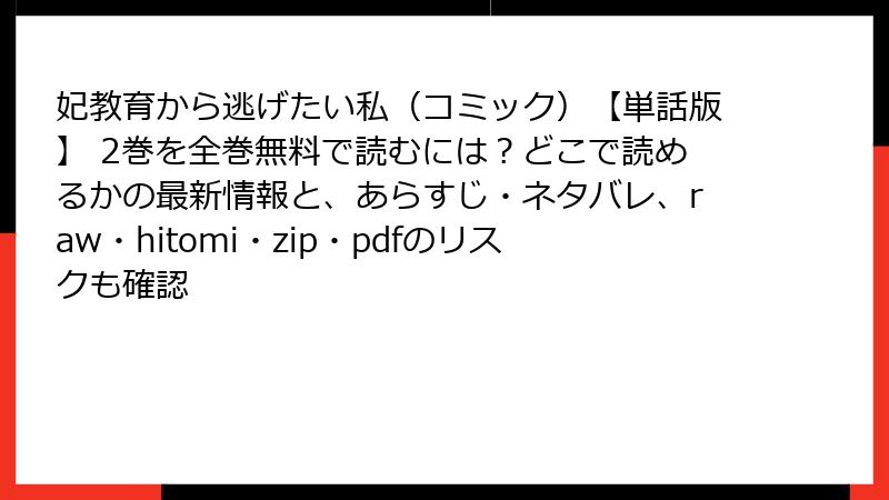 妃教育から逃げたい私(コミック)【単話版】 2巻を全巻無料で読むには?どこで読めるかの最新情報と、あらすじ・ネタバレ、raw・hitomi・zip・pdfのリスクも確認