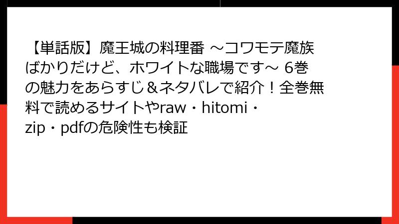 【単話版】魔王城の料理番 ~コワモテ魔族ばかりだけど、ホワイトな職場です~ 6巻を海賊版サイトで読むリスクの詳細解説