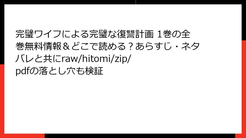 特に「完璧ワイフによる完璧な復讐計画」のような人気作品は、出版社が積極的に監視しており、摘発事例も少なくありません。一度の利用が人生を台無しにするリスクは決して軽視できません。