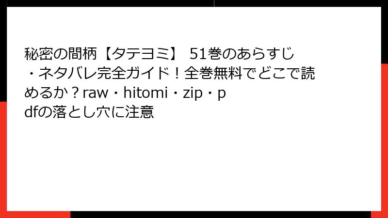 秘密の間柄【タテヨミ】 51巻を海賊版サイトで読むリスク詳解