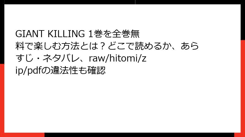 GIANT KILLING 1巻を全巻無料で楽しむ方法とは?どこで読めるか、あらすじ・ネタバレ、raw/hitomi/zip/pdfの違法性も確認