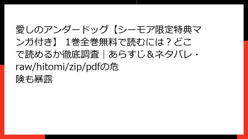 愛しのアンダードッグ【シーモア限定特典マンガ付き】 1巻全巻無料で読むには?どこで読めるか徹底調査|あらすじ&ネタバレ・raw/hitomi/zip/pdfの危険も暴露