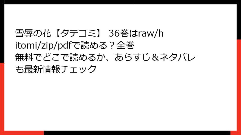 『雪辱の花【タテヨミ】』36巻は、復讐と愛の狭間で揺れる主人公たちの心理がさらに深掘りされる回です。この記事では、ネタバレを徹底的に解説します。注意:以下は完全なネタバレを含むため、未読の方はご注意ください。全体の流れを振り返りつつ、36巻のキーシーンを詳しく見ていきましょう。