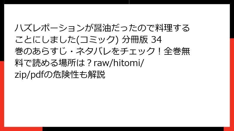 ハズレポーションが醤油だったので料理することにしました(コミック) 分冊版 34巻のあらすじ・ネタバレをチェック!全巻無料で読める場所は?raw/hitomi/zip/pdfの危険性も解説