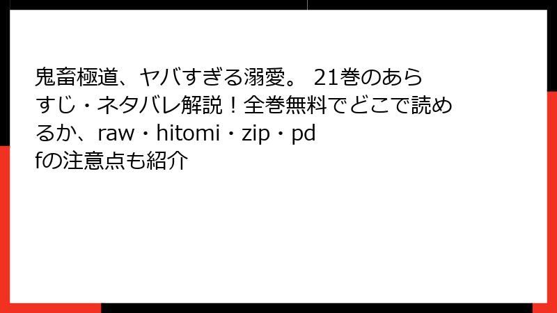 大ヒットのBL漫画「鬼畜極道、ヤバすぎる溺愛。」の21巻は、影と間宮の関係がさらに激しく進展する巻! 過去のトラウマが再燃し、ヤクザの世界の残酷さが二人の絆を試します。以下では、ネタバレ満載で詳しく解説しますので、未読の方は注意してください。シリーズのファンなら、この巻のドラマティックな展開に心を奪われるはずです。