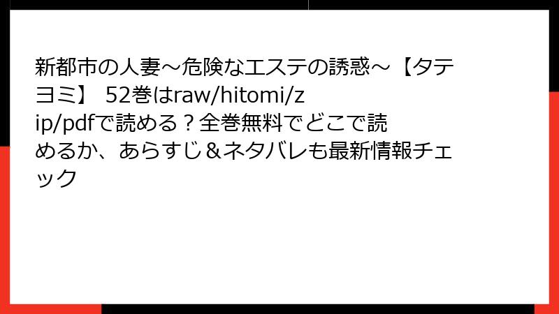 この人気タテヨミ漫画シリーズの52巻では、新都市の人妻たちが直面する禁断の誘惑がさらに深みを増します。業界屈指の大企業の会社員たちが集まる洗練された新都市を舞台に、謎めいたエステティックサロンが人妻たちの日常を揺るがします。以下で、シリーズの背景から52巻の具体的な展開までを詳しく解説します。