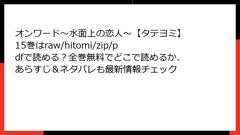 人気の縦読みコミック「オンワード~水面上の恋人~」の15巻を楽しみたいと思うファンも多いでしょう。しかし、raw、hitomi、zip、pdf、漫画バンクなどの海賊版サイトを利用するのは、さまざまなリスクを伴います。この記事では、そうしたサイトで読むことの危険性を詳しく解説します。法的問題からセキュリティの脅威まで、読み応えのある形で掘り下げていきましょう。海賊版の利用は避け、正規の手段をおすすめします。