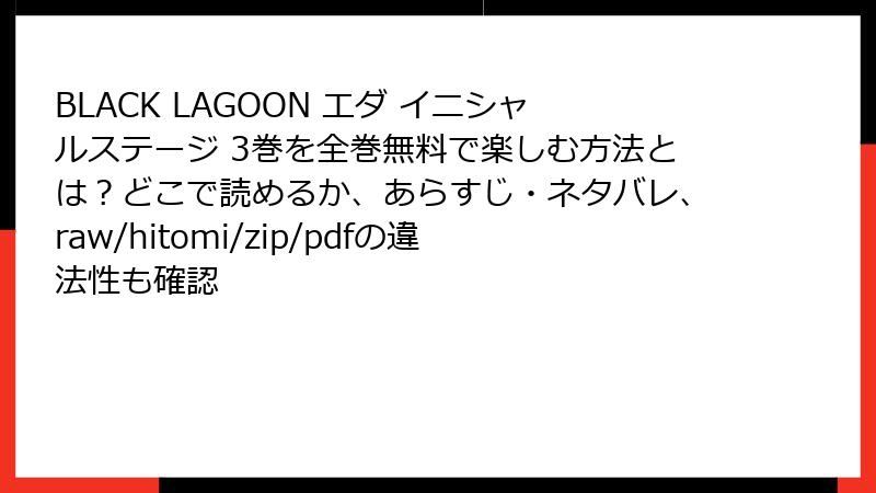 人気のスピンオフ漫画『BLACK LAGOON エダ イニシャルステージ』3巻を、raw、hitomi、zip、pdf、漫画バンクなどの海賊版サイトで読むのは、手軽に見える一方で深刻なリスクを伴います。これらのサイトは著作権を侵害した違法コンテンツを扱っており、利用者は知らず知らずのうちにトラブルに巻き込まれる可能性があります。以下では、法的、セキュリティ、品質、倫理的な観点から詳しく解説します。海賊版の利用は一時的な便利さ以上の損失を生むことを理解しましょう。