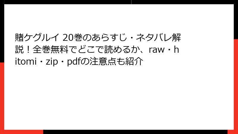 賭ケグルイシリーズの人気は衰え知らずですが、第20巻のような最新巻をraw、hitomi、zip、pdf、漫画バンクなどの海賊版サイトで読むのは、さまざまなリスクを伴います。これらのサイトは著作権を無視した違法アップロードが横行しており、利用者は知らず知らずのうちにトラブルに巻き込まれる可能性があります。この記事では、そんな海賊版サイトの利用に伴うリスクを詳しく解説します。法的問題からセキュリティの脅威まで、幅広く掘り下げます。