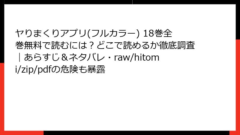 この記事では、人気エロティックコミック「ヤりまくりアプリ(フルカラー)」の18巻に焦点を当てて、ストーリーの詳細なあらすじを紹介します。シリーズ全体の流れを踏まえつつ、18巻のハイライトをネタバレ込みで解説。主人公の成長や女性キャラクターとの絡みが満載の巻です。読み応えを出すために、ストーリーの展開、キーイベント、キャラクター分析を分けてお届けします。