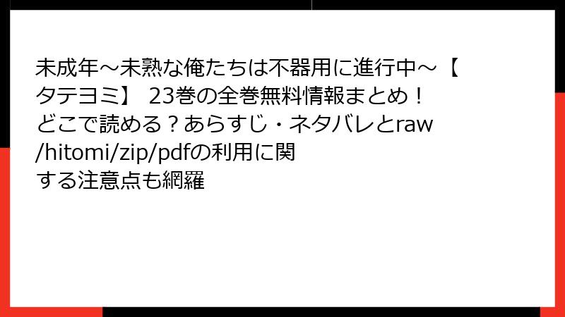未成年~未熟な俺たちは不器用に進行中~【タテヨミ】 23巻の全巻無料情報まとめ!どこで読める?あらすじ・ネタバレとraw/hitomi/zip/pdfの利用に関する注意点も網羅