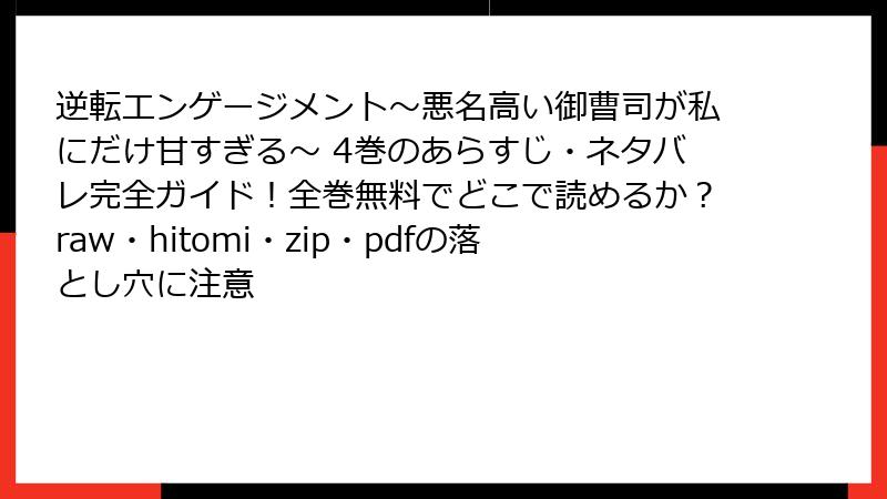 逆転エンゲージメント~悪名高い御曹司が私にだけ甘すぎる~ 4巻のあらすじ・ネタバレ完全ガイド!全巻無料でどこで読めるか?raw・hitomi・zip・pdfの落とし穴に注意