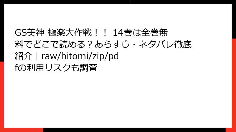 GS美神 極楽大作戦!! 14巻をraw/hitomi/zip/pdf/漫画バンクなどの海賊版サイトで読むリスク