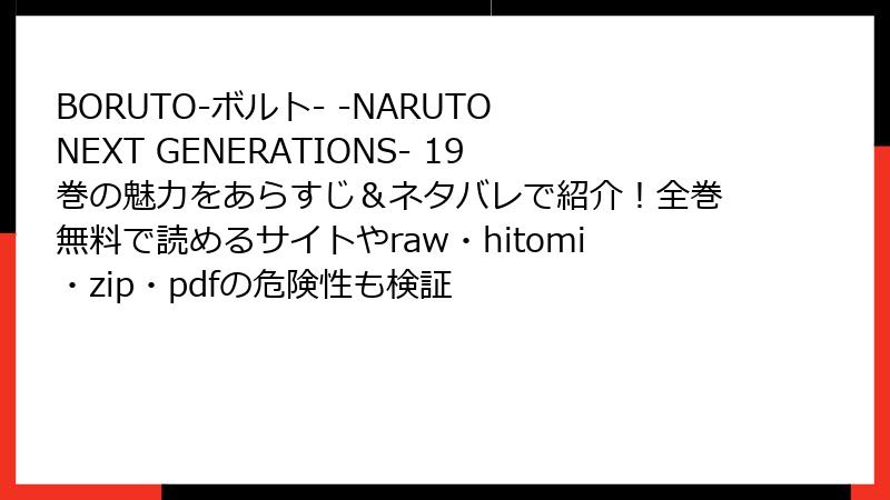 人気漫画「BORUTO-ボルト- -NARUTO NEXT GENERATIONS-」の19巻を、raw/hitomi/zip/pdf/漫画バンクなどの海賊版サイトで読むことは、一見手軽に思えますが、多大なリスクを伴います。この記事では、法的、セキュリティ、プライバシー、品質、倫理的な側面から詳しく解説します。これらのサイトは著作権を侵害した違法コンテンツを扱っており、利用者はさまざまな問題に直面する可能性があります。
