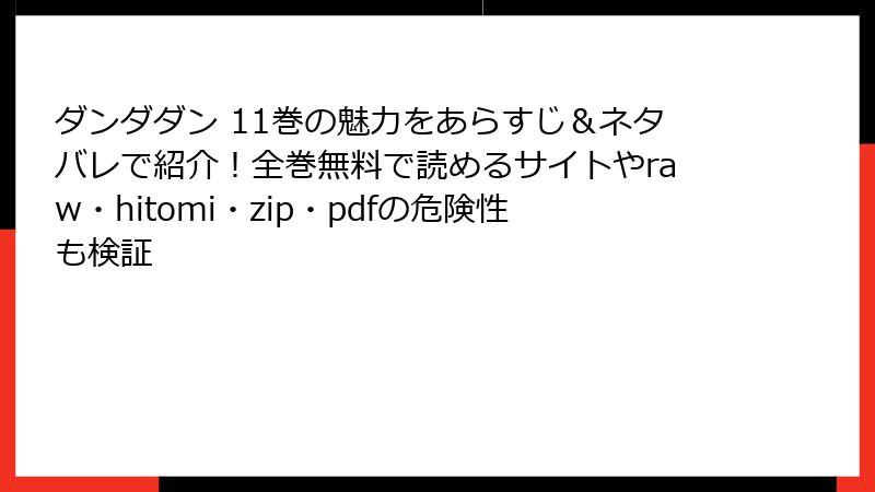 ダンダダン11巻を読むなら、コミックシーモアやebookjapanのような多機能サービスがおすすめ。配信されていないめちゃコミックは避け、他の選択肢を検討しましょう。電子書籍の利点は、場所を選ばず即時入手できる点です。キャンペーンをチェックして、お得に楽しんでください。この情報は2025年時点のものですが、配信状況は変更される可能性があるので、最新を確認することを忘れずに。
