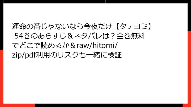 人気BLオメガバースマンガ「運命の番じゃないなら今夜だけ【タテヨミ】」の第54巻を、raw、hitomi、zip、pdf、漫画バンクなどの海賊版サイトで読むのは、手軽に思えるかもしれません。しかし、これらのサイトを利用することは、さまざまな深刻なリスクを伴います。この記事では、そうしたリスクを詳しく解説し、なぜ避けるべきかを読み応えのある形でまとめました。法的問題からセキュリティの脅威まで、具体的に掘り下げます。海賊版の利用は作者や出版社の権利を侵害するだけでなく、自分自身を危険にさらす行為です。