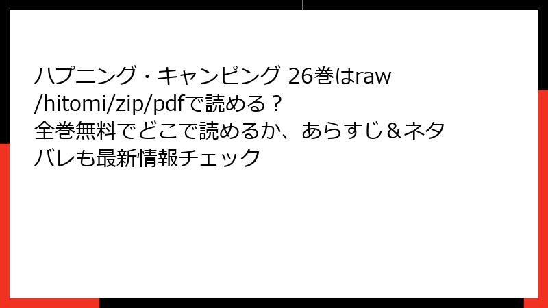 調査の結果、「ハプニング・キャンピング」は複数のサービスで電子書籍版が配信されています。主に単巻購入やタテヨミ形式で利用可能で、無料試し読みが設けられている場合が多いです。以下に配信中のサービスを表でまとめます。各サービスでの具体的な内容も記載します。
