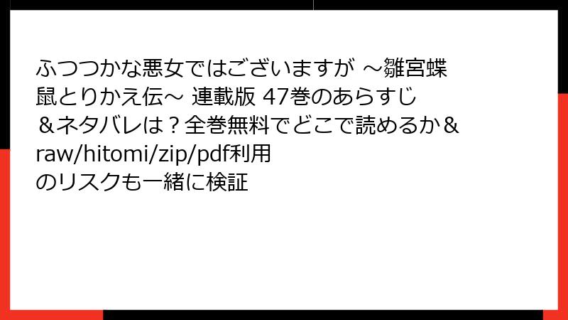 この記事では、人気漫画「ふつつかな悪女ではございますが ~雛宮蝶鼠とりかえ伝~」の連載版47巻について、詳細なあらすじをネタバレ込みで解説します。物語は後宮を舞台にした入れ替わりドラマで、陰謀と人間模様が絡み合うファンタジー要素満載の作品です。47巻では、第3幕の謎が徐々に明かされ、玄家の雛女・歌吹を中心に展開します。読み応えを出すために、背景からキャラクターの心理、クライマックスまでを細かく分けています。