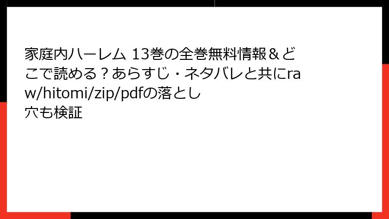 家庭内ハーレム 13巻を海賊版サイトで読むリスク詳解